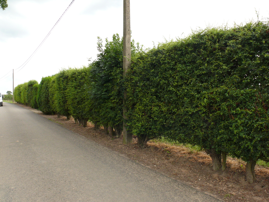 Langerijnsweg. Oude meidoornhaag.