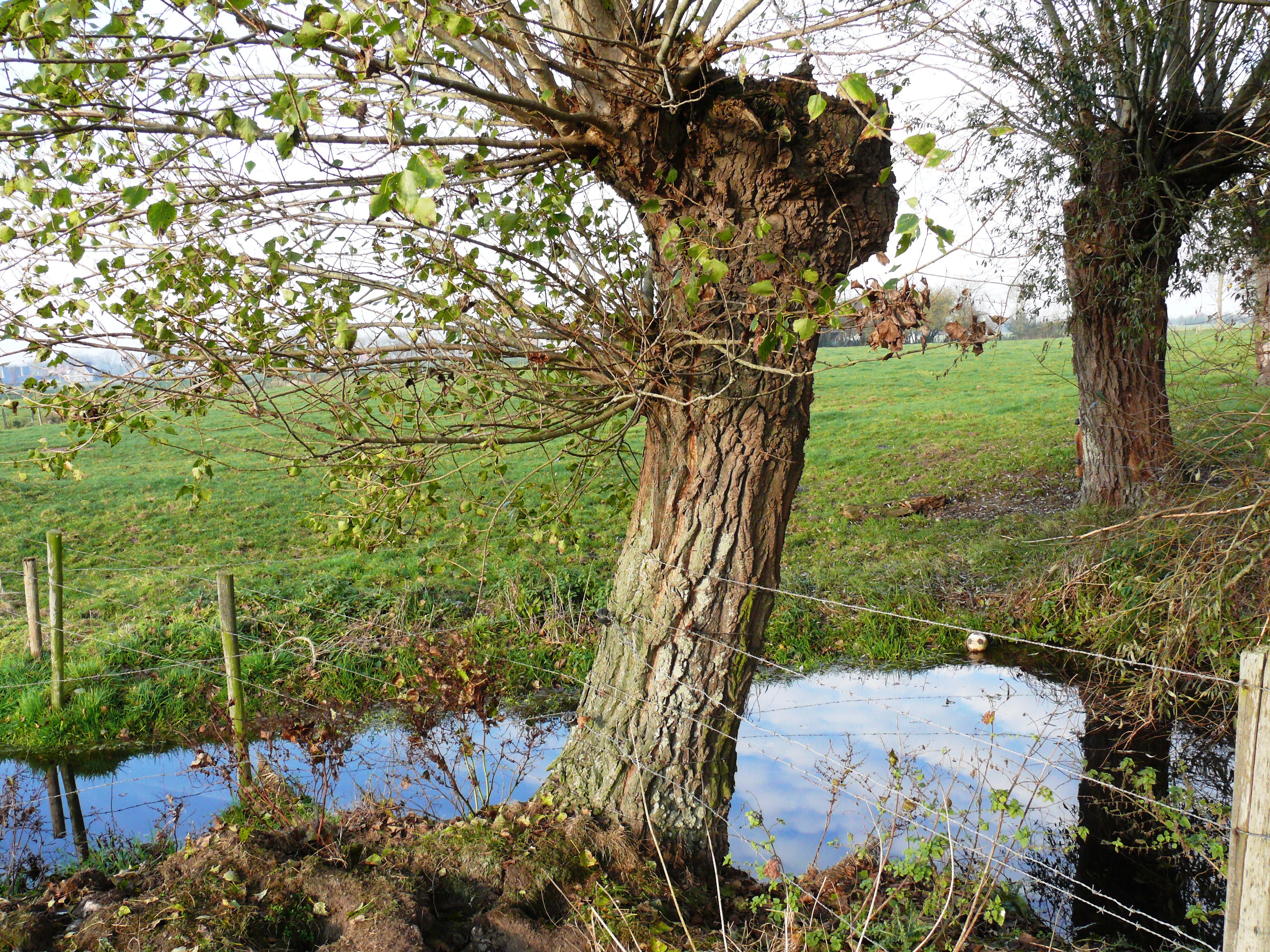 Zwarte populier knotboom. Hoekboom bij poel.
