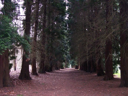 Dreef van reuzenlevensboom bij Hoeverheide