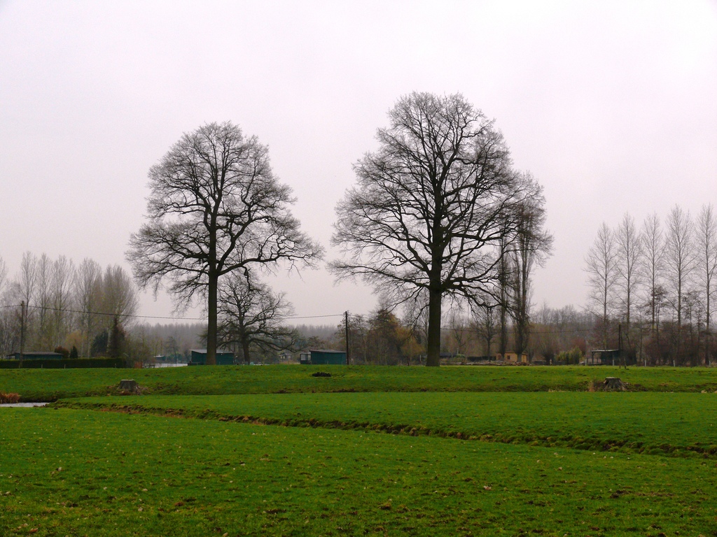 Kasteeldomein. Opgaande eiken bij oude Scheldemeander.