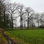Kasteeldomein. Opgaande eiken bij oude Scheldemeander.