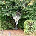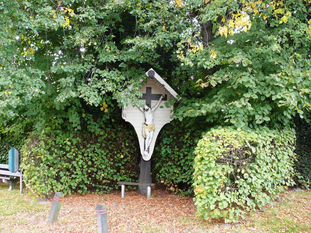 Bosstraat 15. Wegkruis met 2 gakandelaarde lindes.