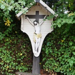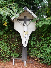 Bosstraat 15. Wegkruis met 2 gakandelaarde lindes.