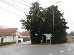 Neogotisch wegkruis met Taxusbomen en Hulsthaag.