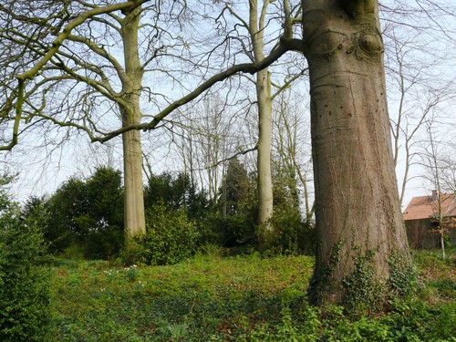 De afbeelding 'Drie opgaande beuken in pastorietuin' gemaakt door Van der Linden, Geert wordt ter beschikking gesteld door Agentschap Onroerend Erfgoed (AOE) onder de volgende voorwaarden: Modellicentie voor gratis hergebruik, Naamsvermelding 4.0 Internationaal.
