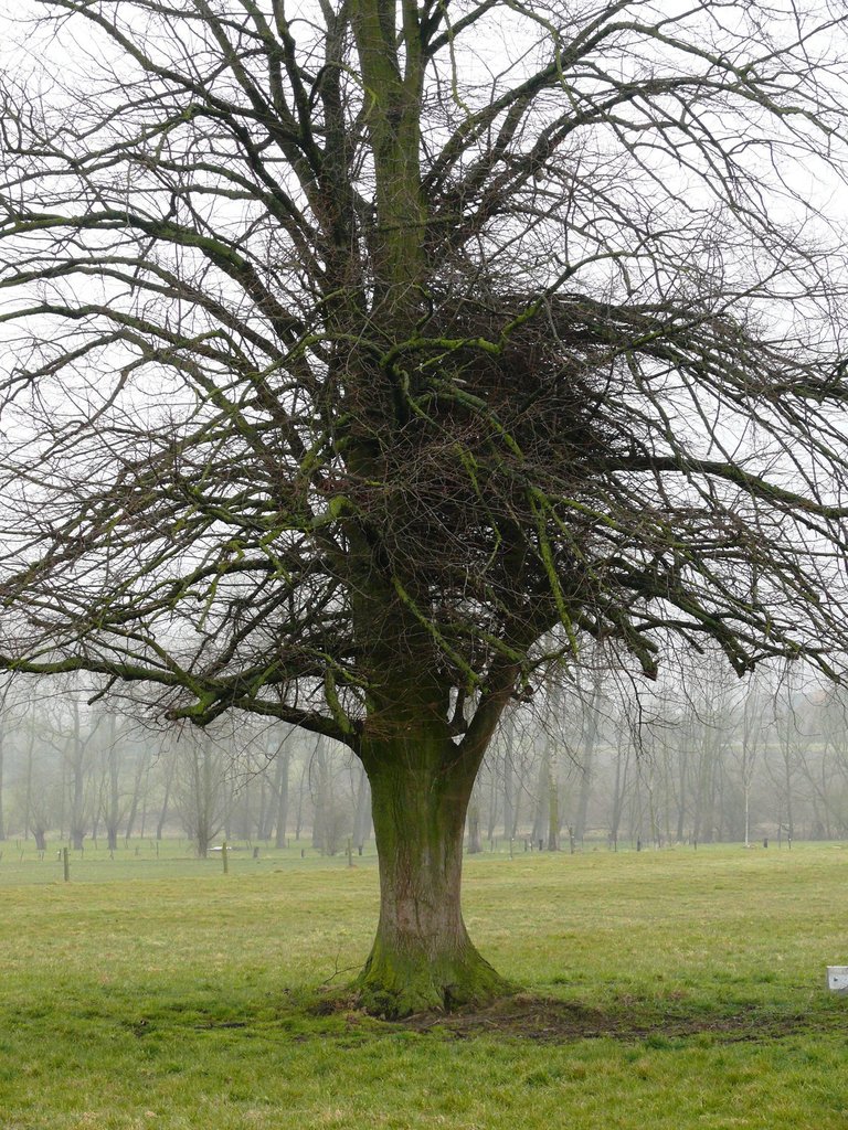 Molenhoek. Twee opgaande Lindebomen.