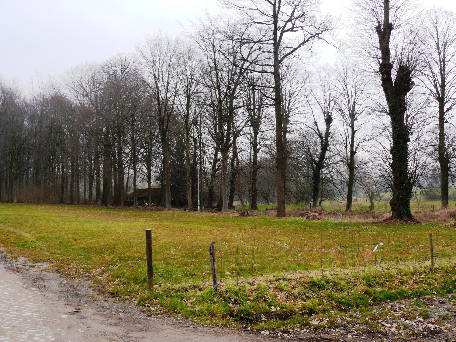 Kasteeldomein van Leeuwergem. Plein tussen dubbele kasteeldreef en voorhof.