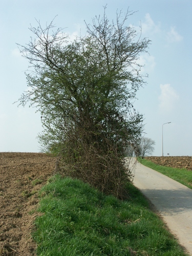 Zwalm Rozebeke Ommegangstraat Meidoorn als relict van houtkant