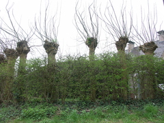 Zwalm St Blasius Boekel Rijkekleie 1-3 Kaphaag van es met ingeplante afsluitingshaag van meidoorn