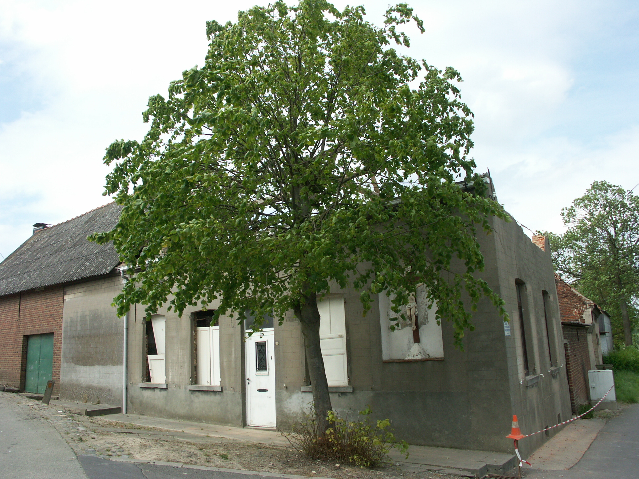 Zwalm St Denijs Boekel Heufkensstraat 22 Linde bij gevelkruis in muurnis