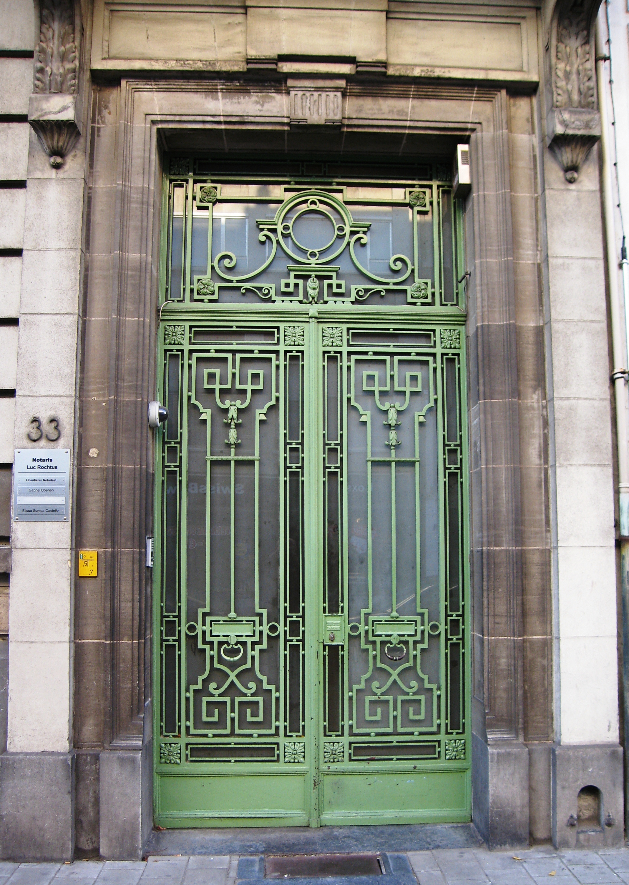 De afbeelding 'Antwerpen Van Breestraat 33 deur' gemaakt door Braeken, Jo wordt ter beschikking gesteld door Agentschap Onroerend Erfgoed (AOE) onder de volgende voorwaarden: Modellicentie voor gratis hergebruik, Naamsvermelding 4.0 Internationaal.