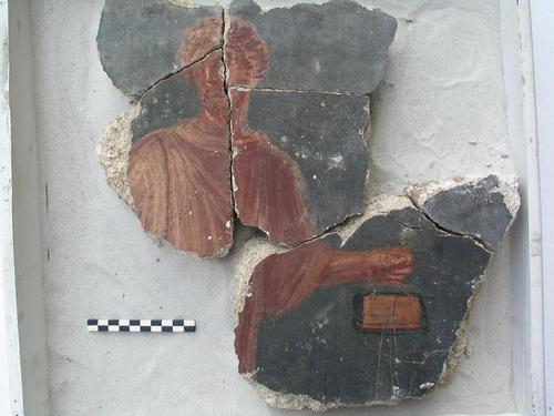 Romeinse muurschildering uit opgravingen in de basiliek