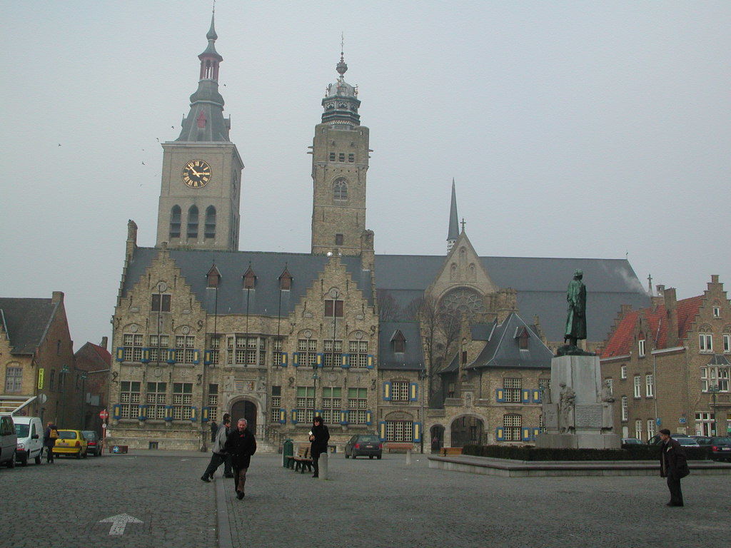 Met decanale kerk Sint-Niklaas op achtergrond