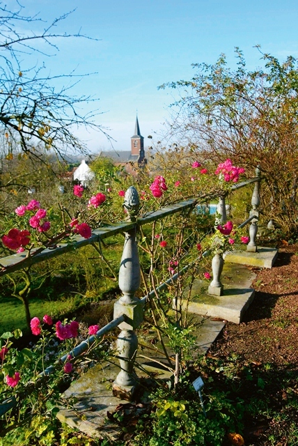 De afbeelding 'De wandeling op de keermuur van de Ezelweide beveiligd door een balustrade met uitzicht op de moestuin, het dorp en het Haspengouwse landschap' wordt ter beschikking gesteld door Agentschap Onroerend Erfgoed (AOE) onder de volgende voorwaarden: Modellicentie voor gratis hergebruik, Naamsvermelding 4.0 Internationaal.