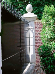 Classicistische hekpijler uit het midden van de 19de eeuw in de scheidingsmuur tussen het kasteel Printhagen en de boerderij, een gevolg van het gebruik van het kasteel als zomerverblijf