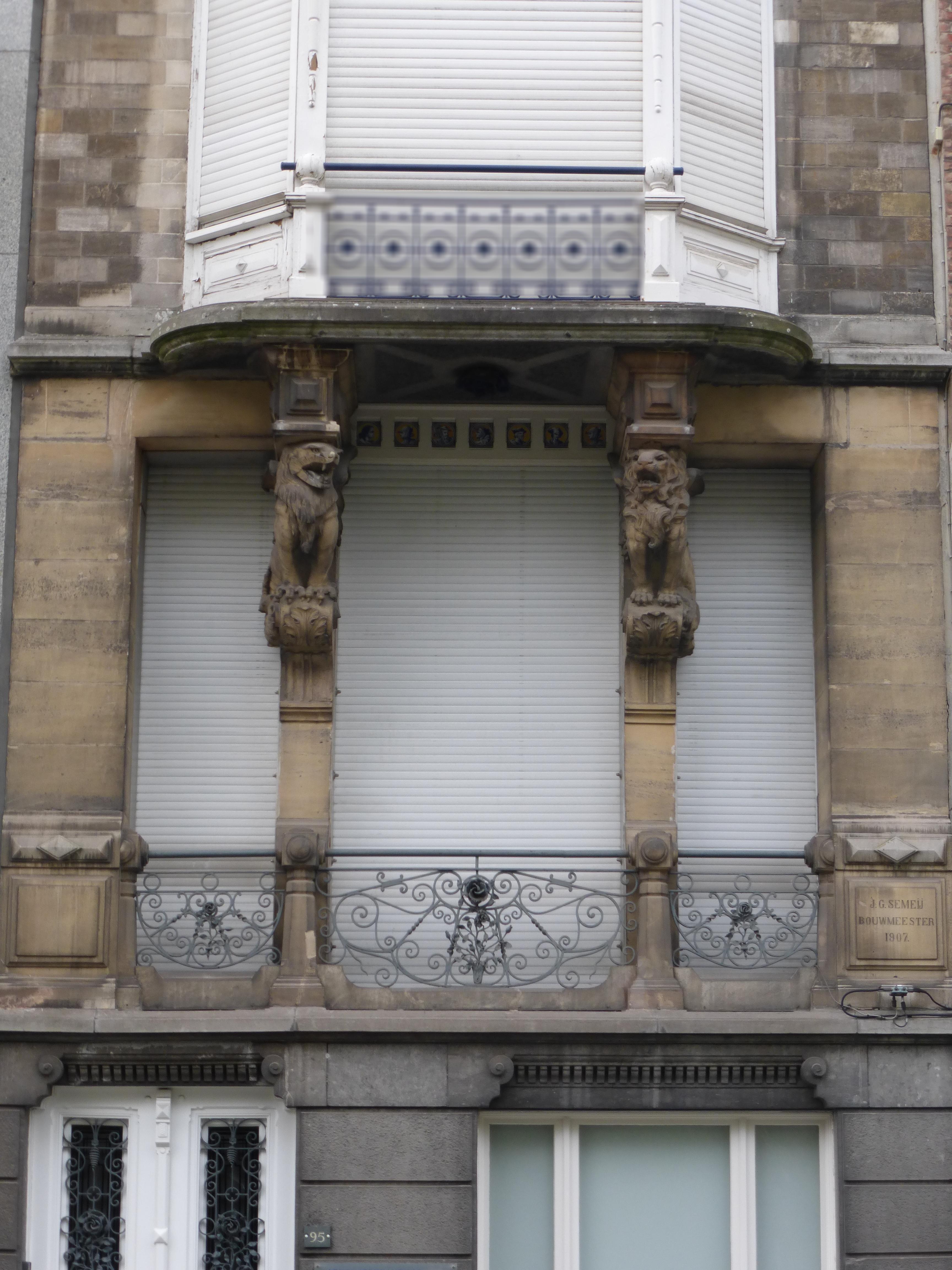 De afbeelding 'Burgerhuis ontworpen door J.G. Semey' gemaakt door Verhelst, Julie wordt ter beschikking gesteld door Agentschap Onroerend Erfgoed (AOE) onder de volgende voorwaarden: Modellicentie voor gratis hergebruik, Naamsvermelding 4.0 Internationaal.