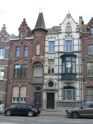 De afbeelding 'Gent Martelaarslaan 415-417' gemaakt door Verhelst, Julie wordt ter beschikking gesteld door Agentschap Onroerend Erfgoed (AOE) onder de volgende voorwaarden: Modellicentie voor gratis hergebruik, Naamsvermelding 4.0 Internationaal.