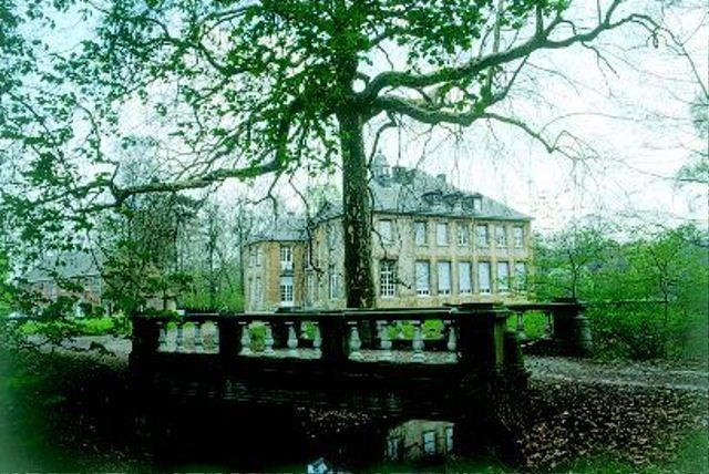 Het in 1920 gebouwde kasteel van Schiplaken en een tot "rivier" gerecycleerde relict van de oude ringgracht