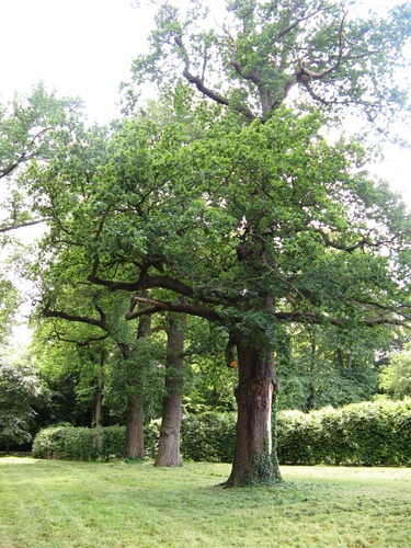 De afbeelding 'Maasmechelen Dreef zn drie opgaande eiken bij berceau (1)' gemaakt door de Haan, Aukje wordt ter beschikking gesteld door Agentschap Onroerend Erfgoed (AOE) onder de volgende voorwaarden: Modellicentie voor gratis hergebruik, Naamsvermelding 4.0 Internationaal.
