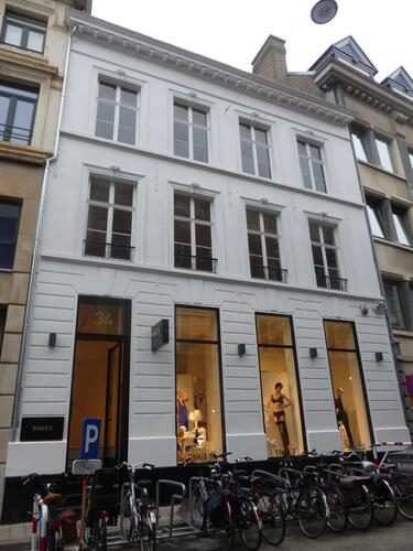 De afbeelding 'Gent Gouvernementstraat 34-38' gemaakt door Verhelst, Julie wordt ter beschikking gesteld door Agentschap Onroerend Erfgoed (AOE) onder de volgende voorwaarden: Modellicentie voor gratis hergebruik, Naamsvermelding 4.0 Internationaal.