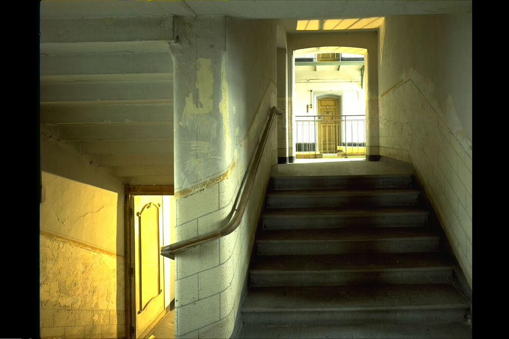 Alle rechten op de afbeelding 'Het Pandreitje, historisch gevangenisgebouw: interieur, cellenblok, zicht op celdeur vanaf trappenhuis, algemeen zicht (gesloopt in 1992)' gemaakt door Pauwels, Oswald zijn voorbehouden aan Pauwels, Oswald.
