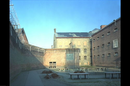 Alle rechten op de afbeelding 'Het Pandreitje, historisch gevangenisgebouw: exterieur, binnenkoer met muur en cellenblok (gesloopt in 1992)' gemaakt door Pauwels, Oswald zijn voorbehouden aan Pauwels, Oswald.