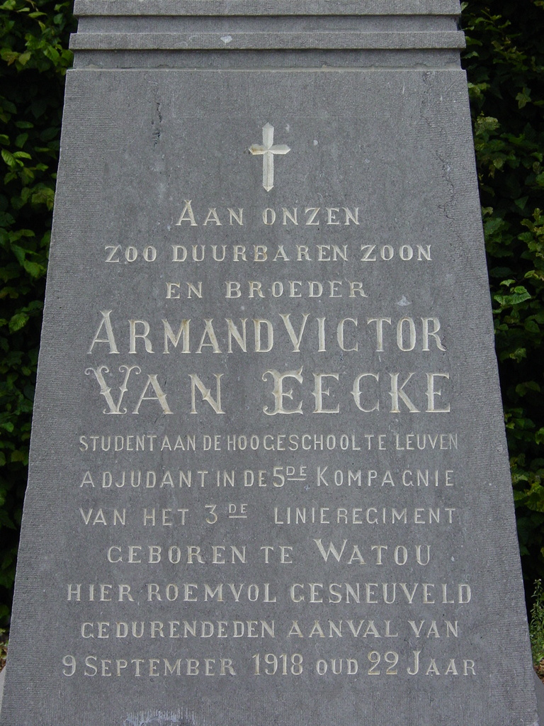 Merkem: Iepersteenweg: Monument Van Eecke: Tekst