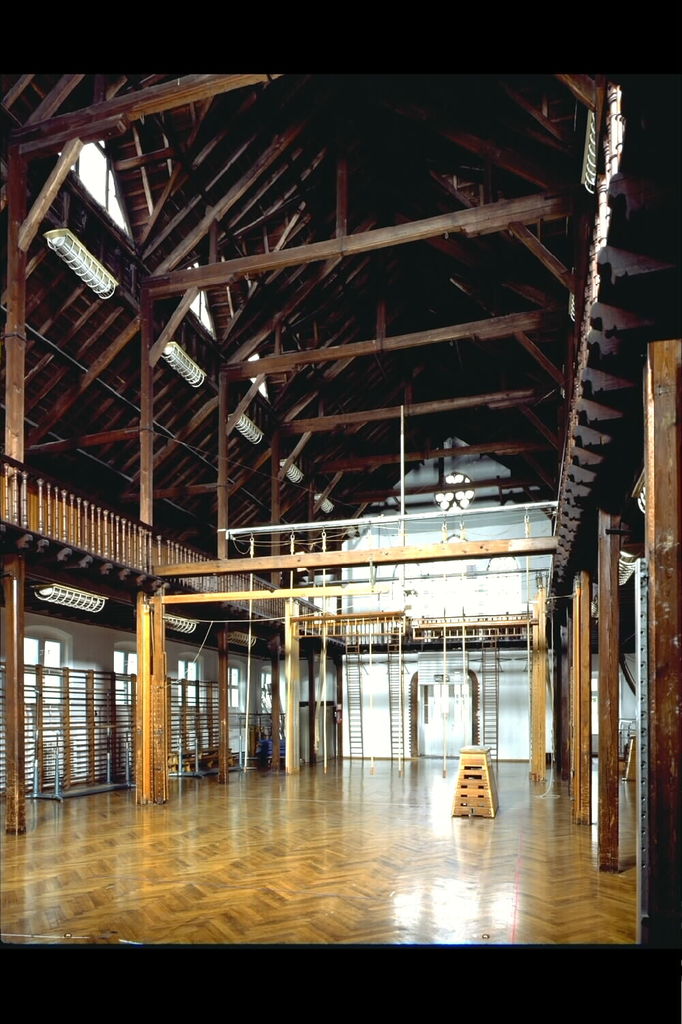 Alle rechten op de afbeelding 'Rijksnormaalschool (Delacenserie): turnzaal, interieur' gemaakt door Pauwels, Oswald zijn voorbehouden aan Pauwels, Oswald.