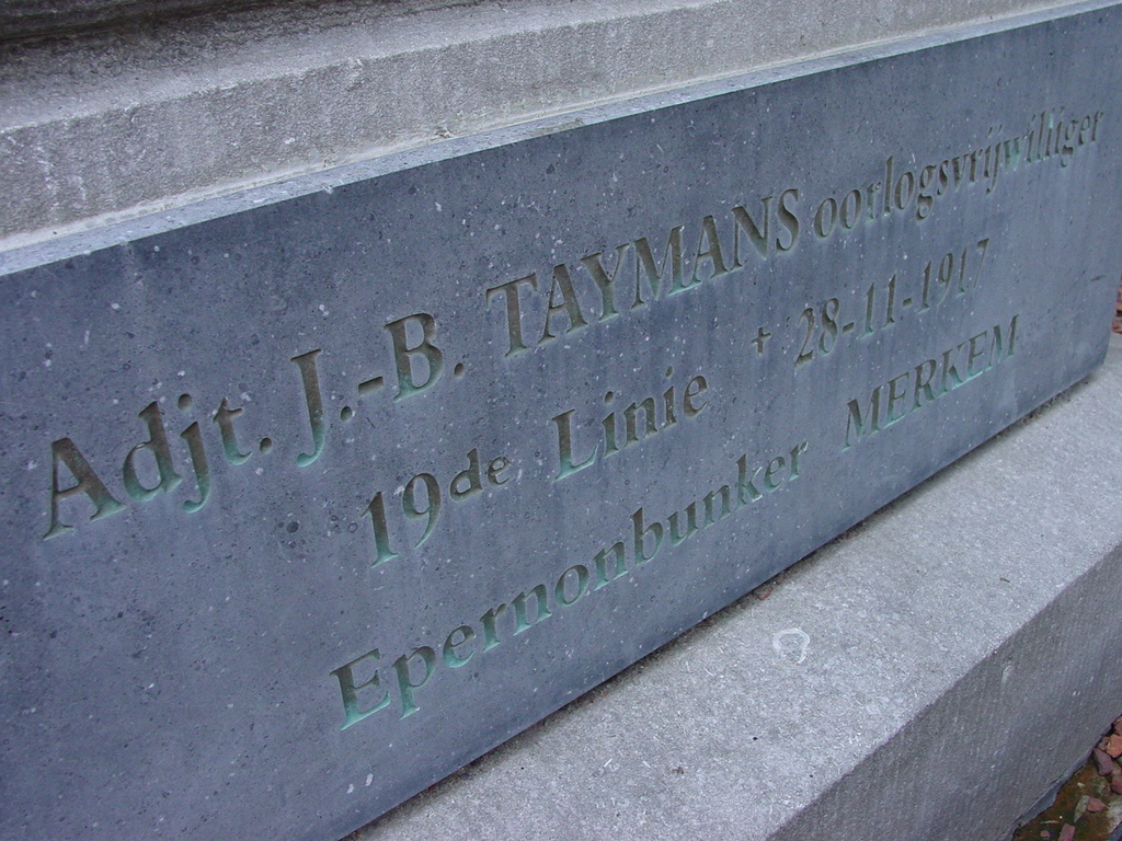 Merkem: 19de Linie Gedenkzuil: Gedenkplaat Taymans