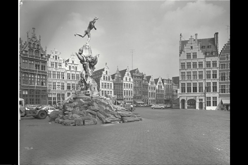 De afbeelding 'Antwerpen Grote Markt' wordt ter beschikking gesteld door Agentschap Onroerend Erfgoed (AOE) onder de volgende voorwaarden: Modellicentie voor gratis hergebruik, Naamsvermelding 4.0 Internationaal.