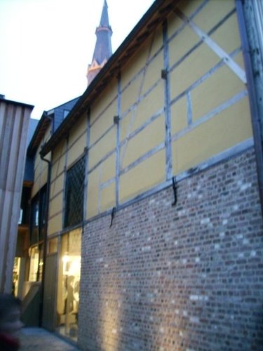 De afbeelding 'Vakwerkgebouwen' gemaakt door Van der Veken, Bert wordt ter beschikking gesteld door Agentschap Onroerend Erfgoed (AOE) onder de volgende voorwaarden: Modellicentie voor gratis hergebruik, Naamsvermelding 4.0 Internationaal.