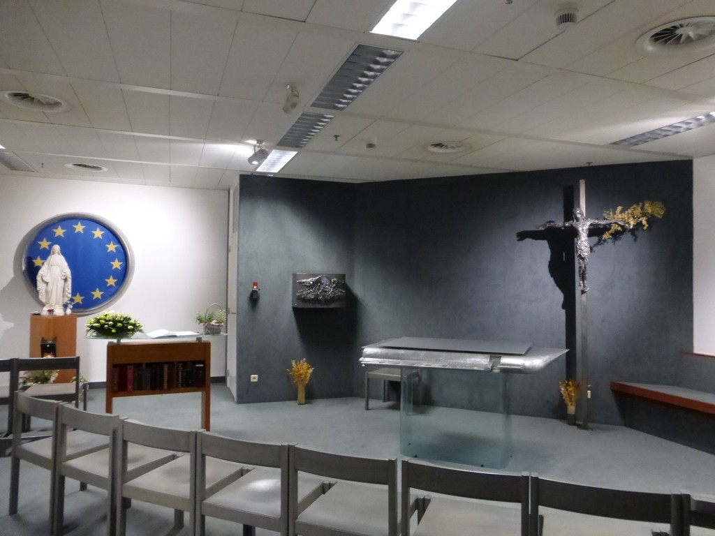 De afbeelding 'Zaventem Luchthaven nieuwe katholieke kapel' gemaakt door Hooft, Elise wordt ter beschikking gesteld door Agentschap Onroerend Erfgoed (AOE) onder de volgende voorwaarden: Modellicentie voor gratis hergebruik, Naamsvermelding 4.0 Internationaal.