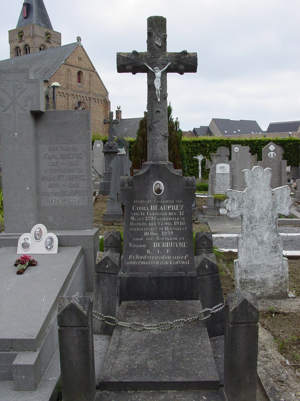 De afbeelding 'Houthulst: Oud kerkhof: Beauprez' gemaakt door Decoodt, Hannelore wordt ter beschikking gesteld door Agentschap Onroerend Erfgoed (AOE) onder de volgende voorwaarden: Modellicentie voor gratis hergebruik, Naamsvermelding 4.0 Internationaal.