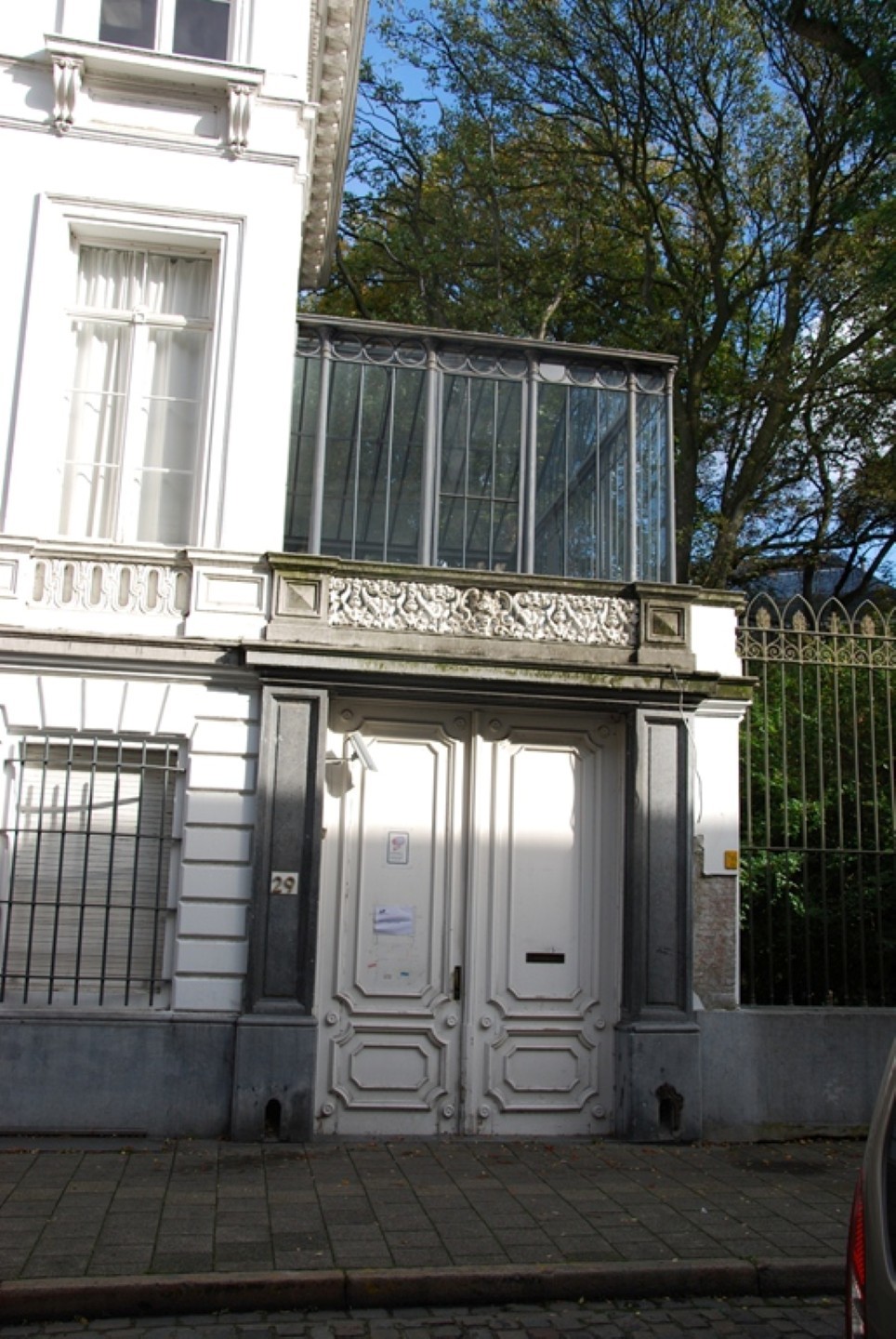 Detail poort en wintertuin van de directeurswoning horend bij het KASK