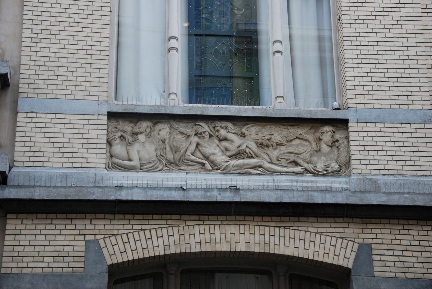 Detail bas-reliëf aan voorgevel