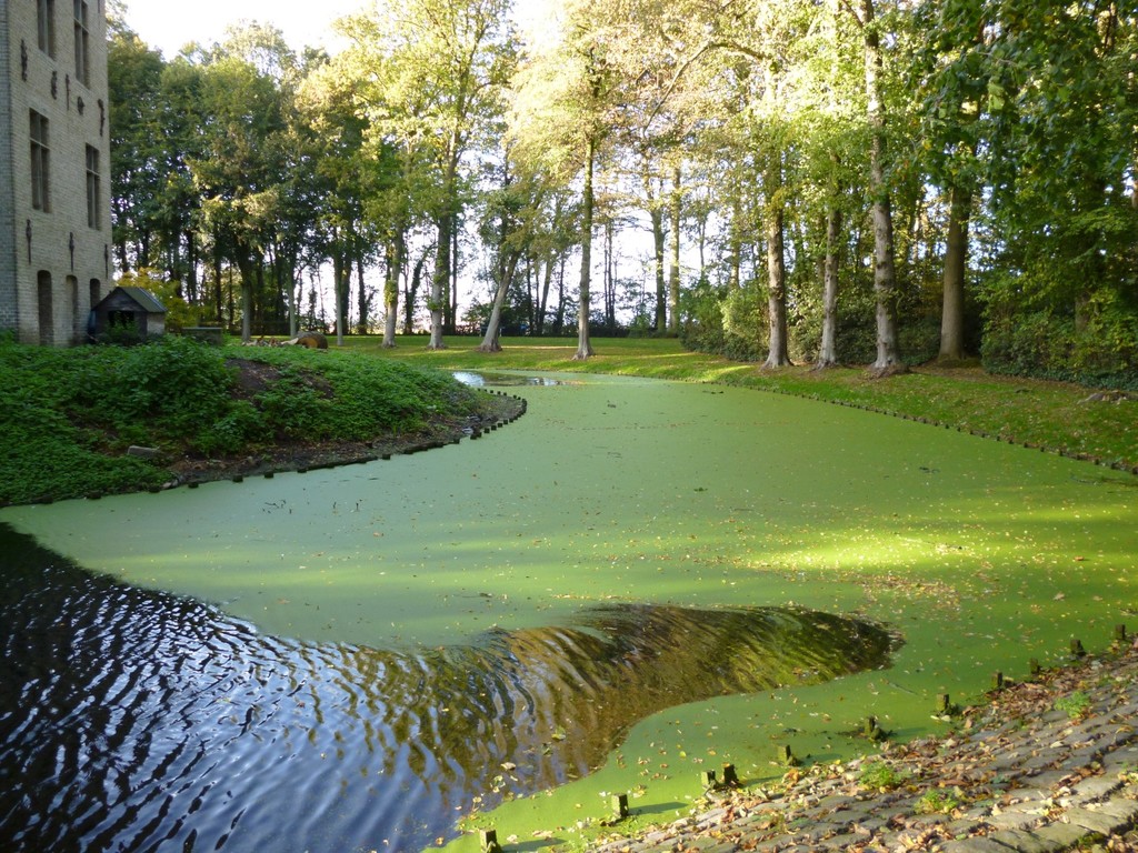Omgracht eiland van het kasteel van Beauvoorde