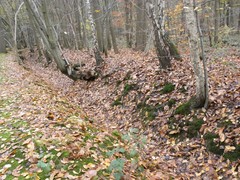 Oost: dreef die de oostelijke grens vormt rond de voormalige kern van het abdijdomein rond Nieuwenhoven ligt, deels vervaagd, deels nog goed herkenbaar als dreef. Hier goed herkenbaar, stuk met gracht en houtkant.