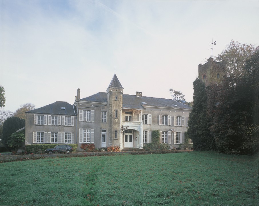 Het kasteel van Rukkelingen met, rechts in beeld, de belvédèretoren vanuit het zuidwesten; Publicatie(s): M&L Cahier 11 Historische tuinen en parken van Vlaanderen. Pajottenland - Zuidwesten van Vlaams Brabant: Bever, Dilbeek, Galmaarden, Gooik, Herne, Lennik, Liedekerke, Pepingen, Roosdaal, Sint-Pieters-Leeuw, Ternat