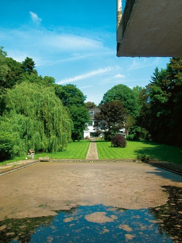 De afbeelding 'Zwembad, tegelpad en villa tegen een achtergrond van honderdjarige beuken en zilverlinden in de tuin van het kasteel van Wolsem' gemaakt door Deneef, Roger wordt ter beschikking gesteld door Agentschap Onroerend Erfgoed (AOE) onder de volgende voorwaarden: Modellicentie voor gratis hergebruik, Naamsvermelding 4.0 Internationaal.