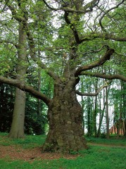 De afbeelding 'Een monumentale tamme kastanje met een opvallend knobbelige stam, dikste boom in het park van rusthuis De Verlosser te Dilbeek' gemaakt door Deneef, Roger wordt ter beschikking gesteld door Agentschap Onroerend Erfgoed (AOE) onder de volgende voorwaarden: Modellicentie voor gratis hergebruik, Naamsvermelding 4.0 Internationaal.