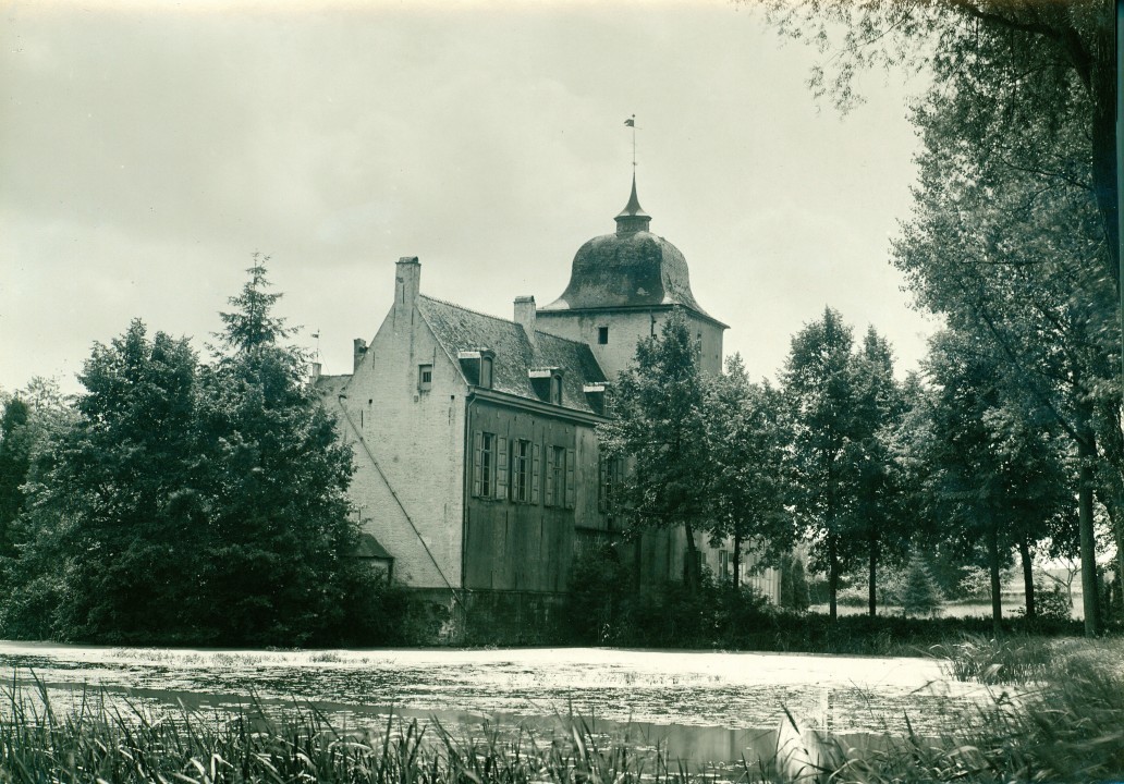 De afbeelding 'Het witgepleisterde Kasteel Nieuwermolen vanuit het noordwesten in 1914, voor de restauratie door Paul Saintenoy in 1928-1932' wordt ter beschikking gesteld door Agentschap Onroerend Erfgoed (AOE) onder de volgende voorwaarden: Modellicentie voor gratis hergebruik, Naamsvermelding 4.0 Internationaal.