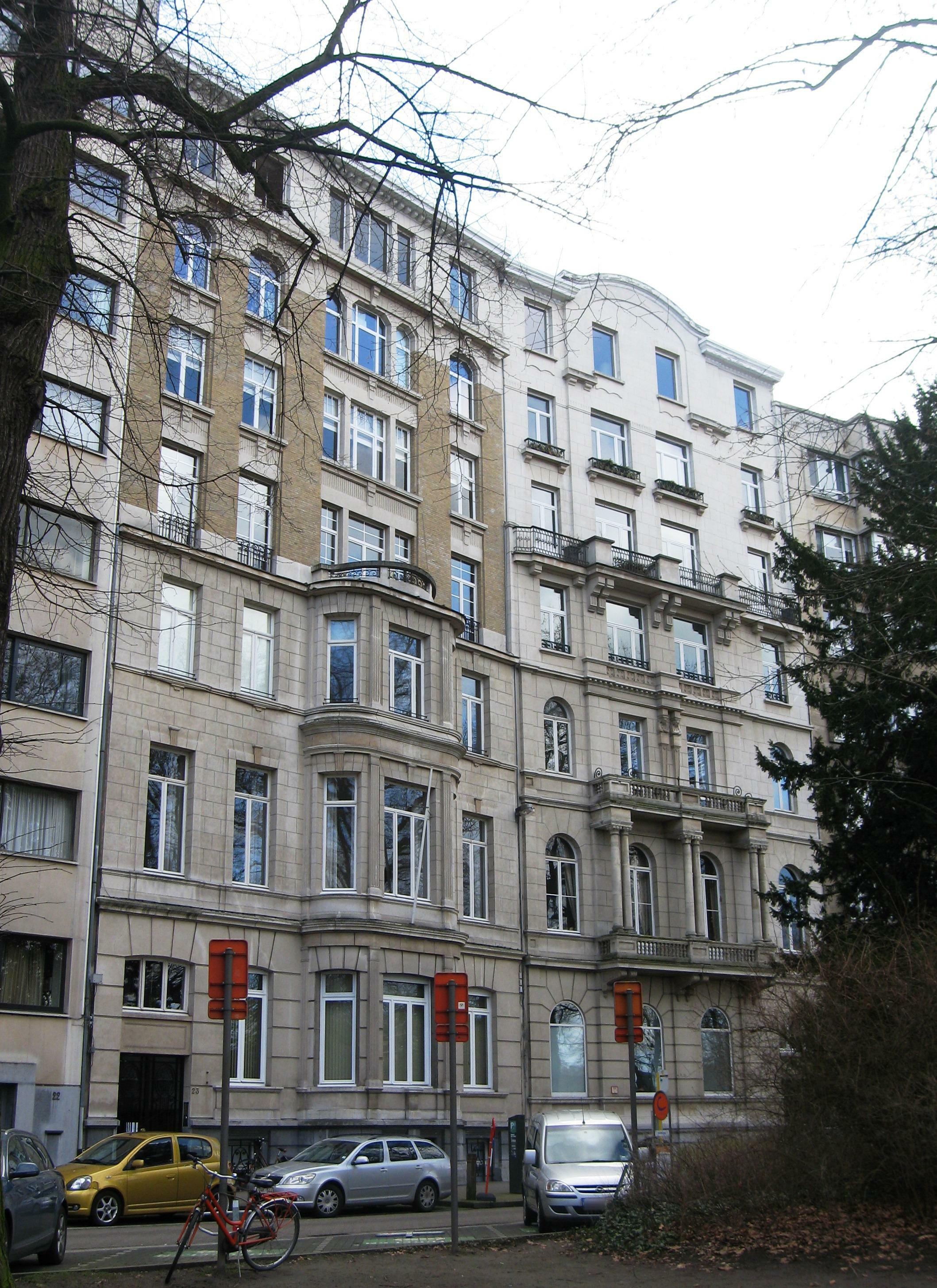 De afbeelding 'Antwerpen Prins Abertlei 23-24' gemaakt door Braeken, Jo wordt ter beschikking gesteld door Agentschap Onroerend Erfgoed (AOE) onder de volgende voorwaarden: Modellicentie voor gratis hergebruik, Naamsvermelding 4.0 Internationaal.