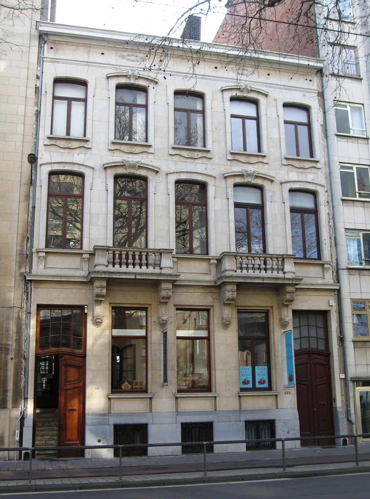 De afbeelding 'Antwerpen Belgiëlei 157-159' gemaakt door Braeken, Jo wordt ter beschikking gesteld door Agentschap Onroerend Erfgoed (AOE) onder de volgende voorwaarden: Modellicentie voor gratis hergebruik, Naamsvermelding 4.0 Internationaal.