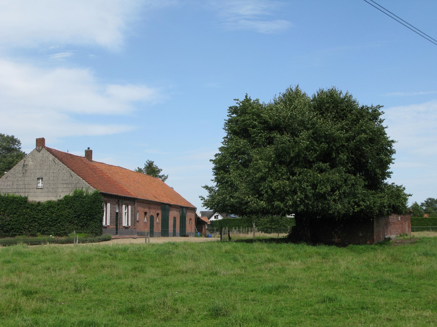 De afbeelding 'Een typische langgevelhoeve met erf' gemaakt door Verdurmen, Inge wordt ter beschikking gesteld door Agentschap Onroerend Erfgoed (AOE) onder de volgende voorwaarden: Modellicentie voor gratis hergebruik, Naamsvermelding 4.0 Internationaal.