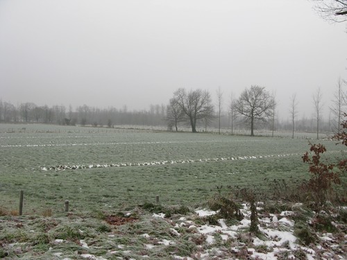 Weiland met drainagegrachten rondom kasteel De Burg