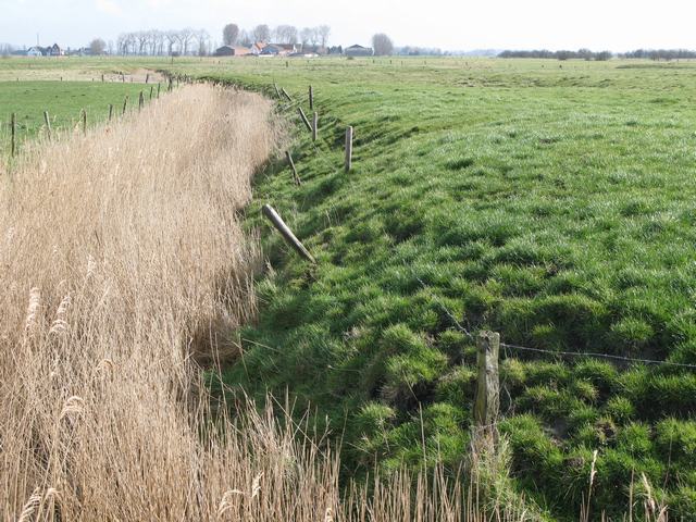 De afbeelding 'Poldergraslanden met microreliëf gescheiden door brede gracht met rietbegroeiing' gemaakt door Deventer, Wouter wordt ter beschikking gesteld door Agentschap Onroerend Erfgoed (AOE) onder de volgende voorwaarden: Modellicentie voor gratis hergebruik, Naamsvermelding-GelijkDelen 4.0 Internationaal.