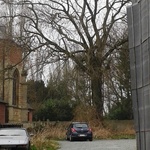 Opgaande es als hoekboom bij kerkhof