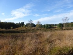 Heide met gecamoufleerde bunkers in het Mastenbos