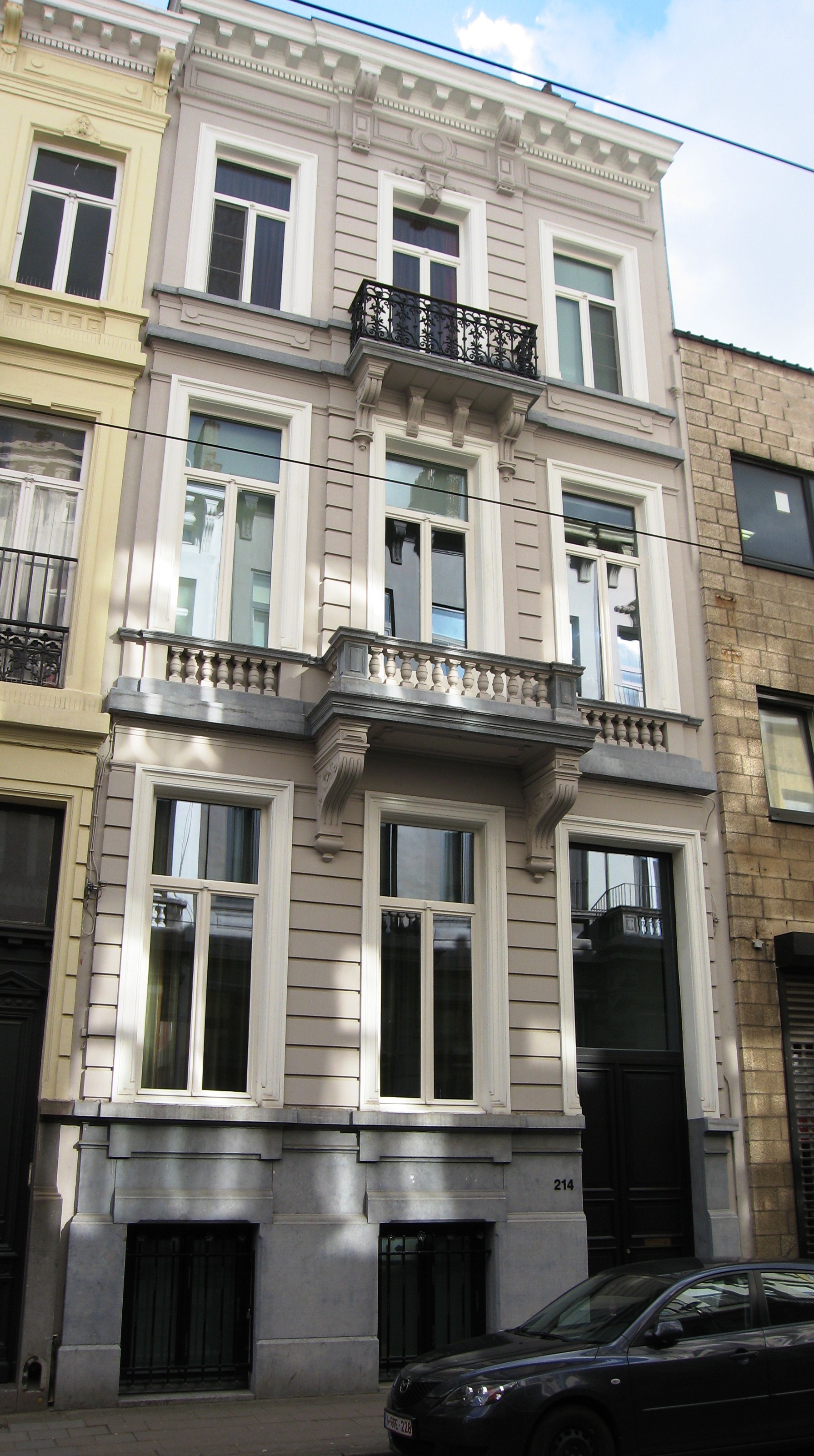 De afbeelding 'Antwerpen Lange Leemstraat 214' gemaakt door Braeken, Jo wordt ter beschikking gesteld door Agentschap Onroerend Erfgoed (AOE) onder de volgende voorwaarden: Modellicentie voor gratis hergebruik, Naamsvermelding 4.0 Internationaal.