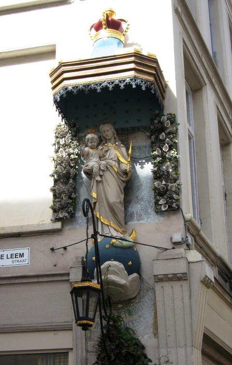 De afbeelding 'Antwerpen Lange Leemstraat 78 madonna' gemaakt door Braeken, Jo wordt ter beschikking gesteld door Agentschap Onroerend Erfgoed (AOE) onder de volgende voorwaarden: Modellicentie voor gratis hergebruik, Naamsvermelding 4.0 Internationaal.